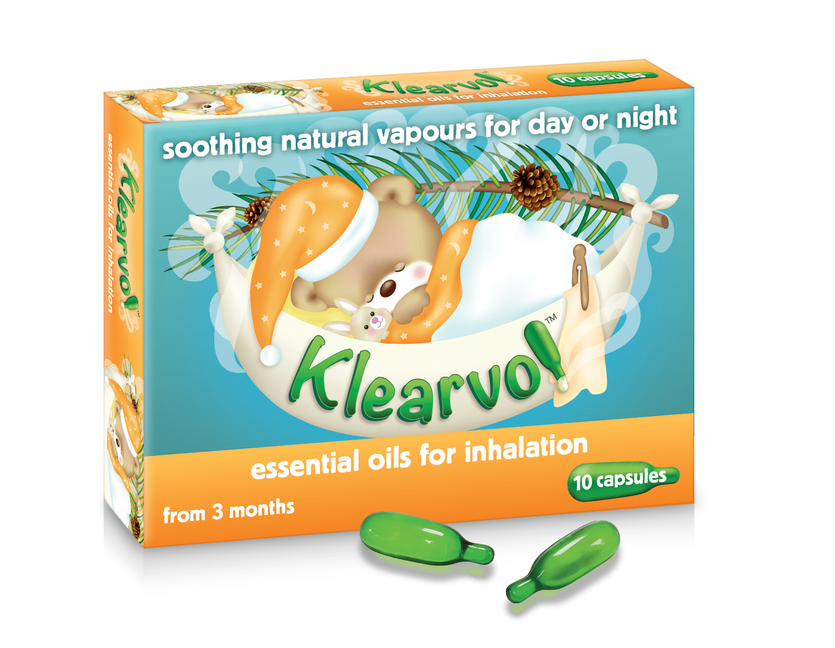 Klear-vol contains soothing natural aromatic oils such as pine, thymol and menthol. These aromatic vapours are suitable from 3 months upwards.