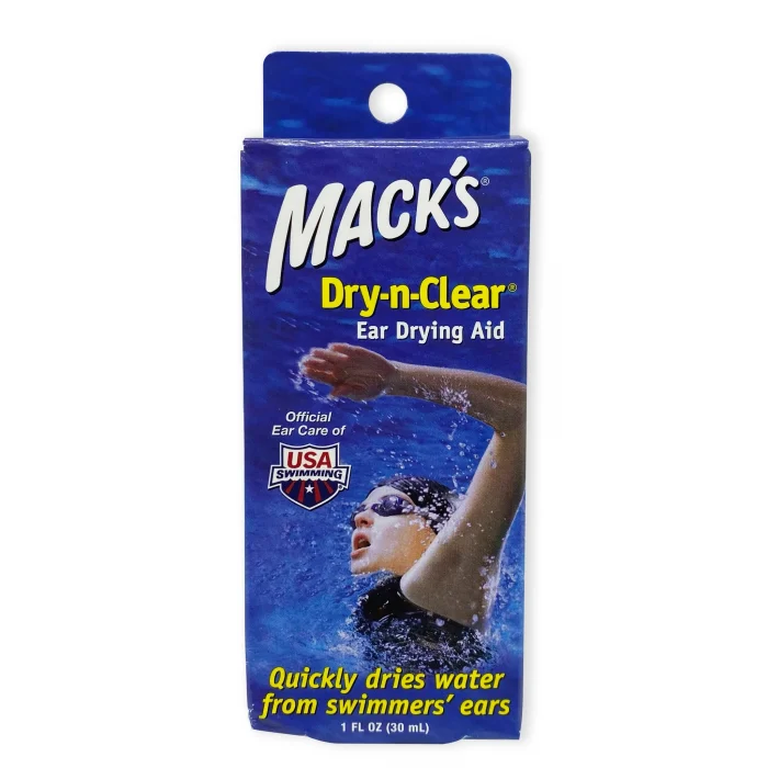 Mack’s® Dry-n-Clear ear drops help relieve the discomfort of water-clogged ears from swimming, bathing, scuba diving, surfing, and other water sports by drying excess water.