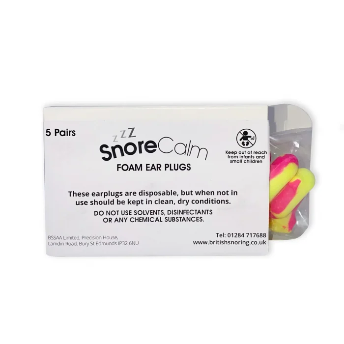 Snore Calm® Foam Ear Plugs are among the highest rated ear plugs available with a Noise Reduction rating of 35db. They are very soft, self adjusting and exert little pressure on the ear canal.
