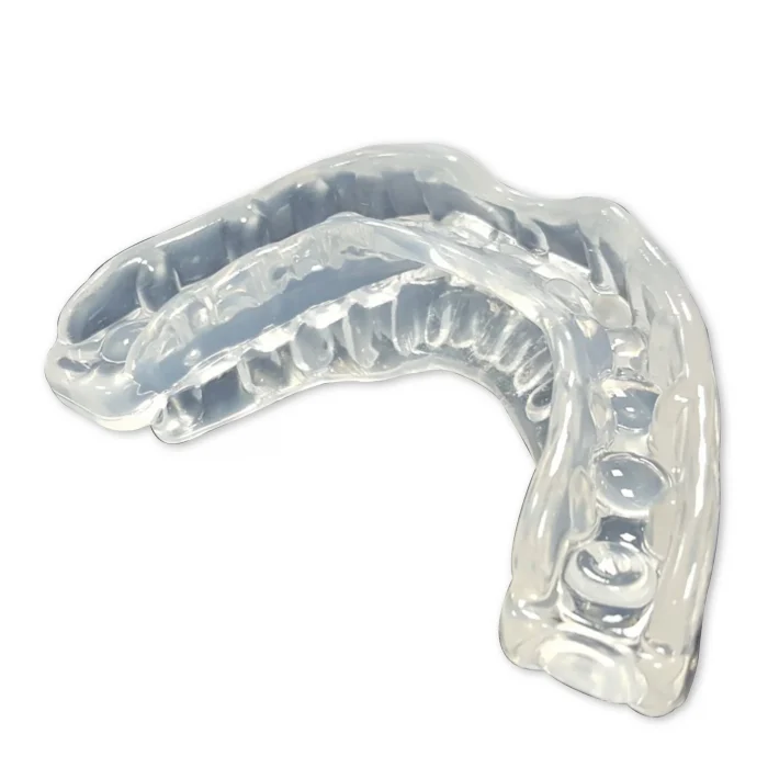 This new version of the simple one-piece boil and bite Mandibular Advancement Device (MAD) has significant improvements over the original SomnoGuard. Customers said they wanted better retention – this has been achieved through the addition of ribbing on the inside of the channel walls. Deeper biting channels were also requested. The new SomnoGuard 3 has deeper channels than before. They wanted the channel walls to be more rigid during moulding, making the moulding process easier and more failsafe. The ribbing adds rigidity simplifying the moulding process.